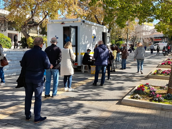 Το κινητό συνεργείο του ΕΟΔΥ διενέργησε τα τεστ στην Κεντρική Πλατεία του