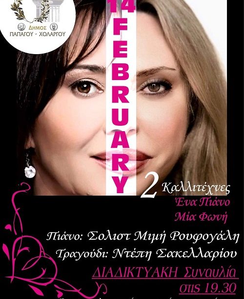 Δυο καταξιωμένες μουσικοί, η καθεμιά στο είδος της, συμπράττουν σε μια διαφορετική διαδικτυακή συναυλία στις 14 Φεβρουάριου, ημέρα του Αγίου Βαλεντίνου, στις 19.30 μ.μ. στο Αμφιθέατρο «Μίκης Θεοδωράκης» του Δήμου Παπάγου – Χολαργού.