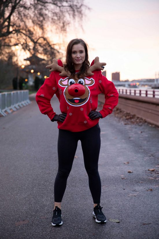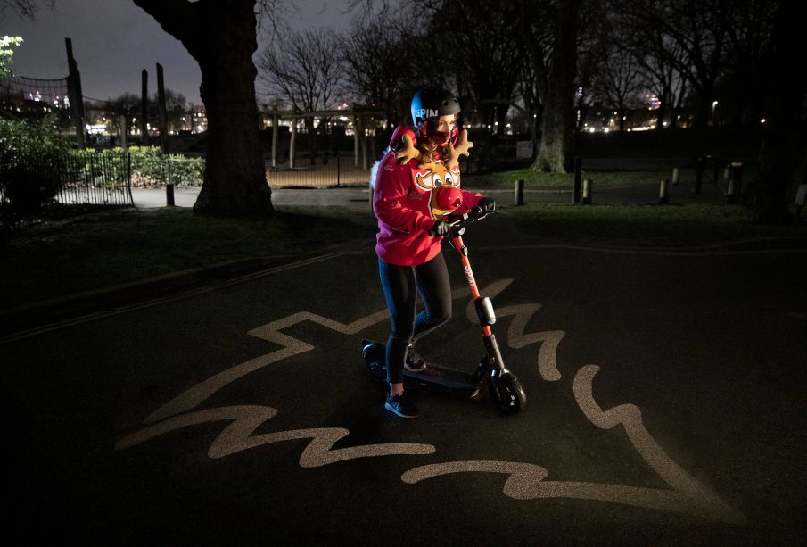 Μπορεί να φαίνεται μία ακόμα υπερβολική Χριστουγεννιάτικη αμφίεση, όμως το ‘Safe DistanceChristmas Jumper προσφέρει ένα ξεχωριστό δώρο στους ποδηλάτες και τους αναβάτες ηλεκτρικών πατινιών: μικροί προβολείς κρυμμένοι στα κέρατα, τη μύτη και την ουρά του ταράνδου, φωτίζουν το έδαφος γύρω από αυτόν που το φορά, σηματοδοτώντας μία «ασφαλή ζώνη» 1.5 μ. σε σχήμα Χριστουγεννιάτικου δέντρου, ώστε οι άλλοι χρήστες του δρόμου να αφήνουν αρκετό χώρο όταν προσπερνούν.
