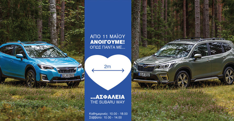 Από τις 11 Μαΐου επαναλειτουργεί η έκθεση της Subaru Πλειάδες Motors στη λεωφόρο Κηφισίας 286 στο Χαλάνδρι με ωράριο 10.00 – 18.00 καθώς και το Τμήμα Ανταλλακτικών, που