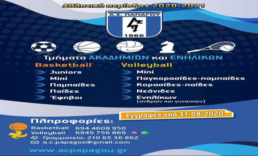 Οι Ακαδημίες και τα Τμήματα Υποδομής του ΑΣ Παπάγου ξεκινούν και πάλι. Από τη Δευτέρα 17
