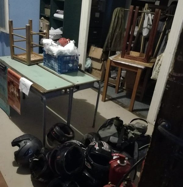 Στους χώρους έχουν βρεθεί κράνη, αντιασφυξιογόνες μάσκες, πυροσβεστήρες, στυλιάρια κ.α. αντικείμενα.