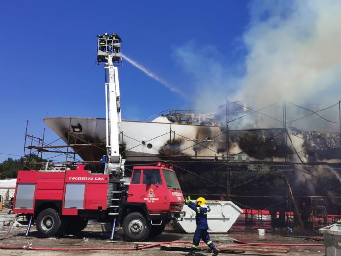 Ερμούπολη: Φωτιά και έκρηξη στο ναυπηγείο του Ταρσανά – Θαλαμηγός έγινε “στάχτη” (φωτο+βίντεο)