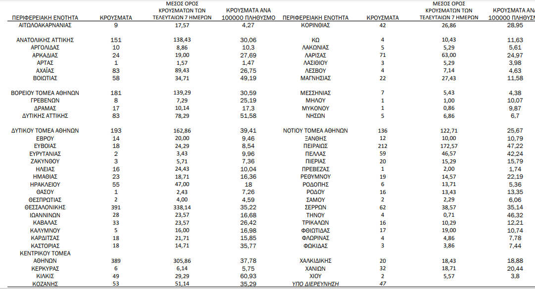 H γεωγραφική κατανομή των 2801 κρουσμάτων. 1350 στην Αττική(ΠΙΝΑΚΑΣ)