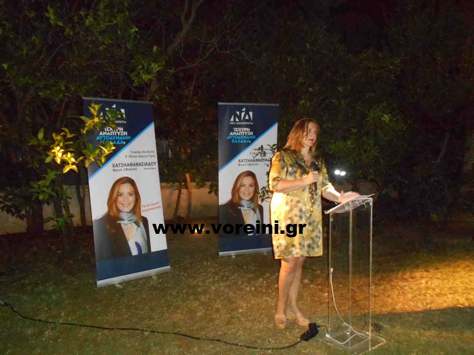 Τόνισε στην ομιλία της στην ανοικτή συγκέντρωσή της η υποψήφια βουλευτής του βορείου τομέα Αθηνών με τη Νέα Δημοκρατία, η Φαίνη Χατζηαθανασιάδου.