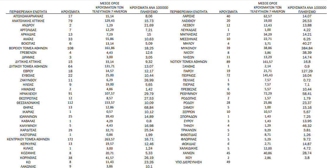 Home›Ελλαδα›Η γεωγραφική κατανομή των 1.558 κρουσμάτων. (ΠΙΝΑΚΑΣ)