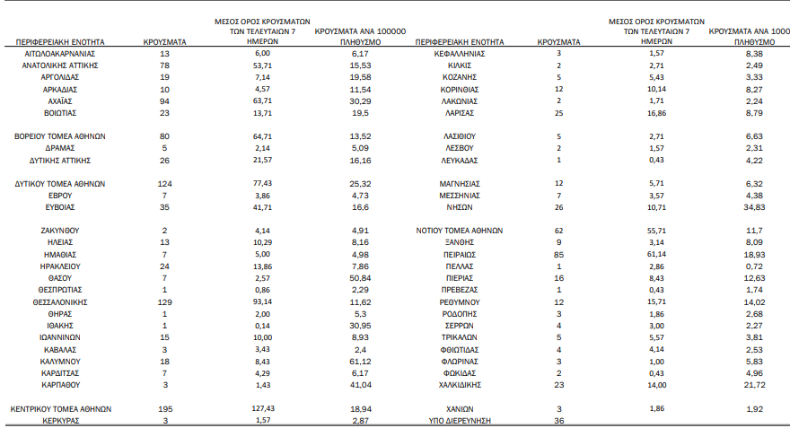 Η γεωγραφική κατανομή των 1327 κρουσμάτων.676 στην Αττική
