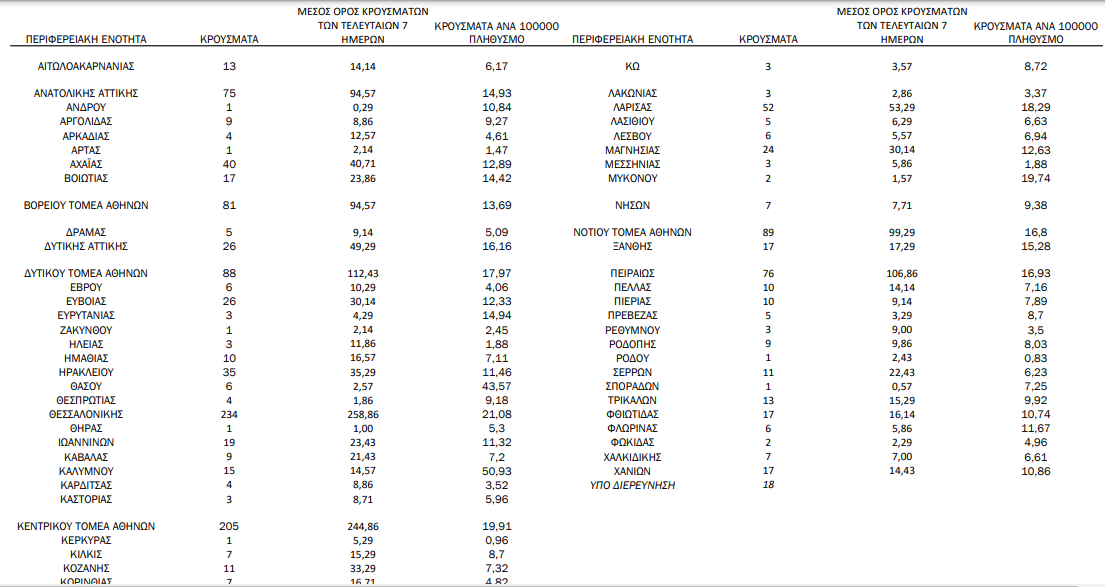 Η γεωγραφική κατανομή των 1391 κρουσμάτων. 647 στην Αττική(ΠΙΝΑΚΑΣ)