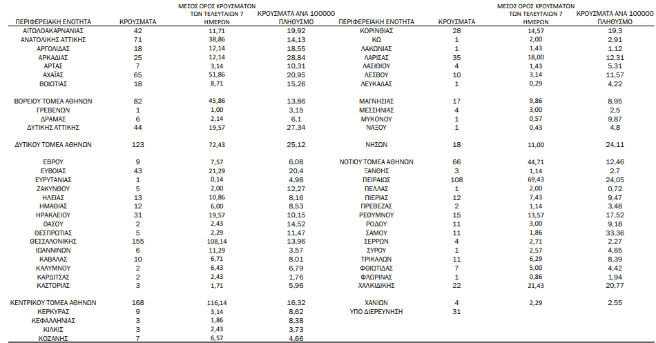 Η γεωγραφική κατανομή των 1424 κρουσμάτων.680 στην Αττική