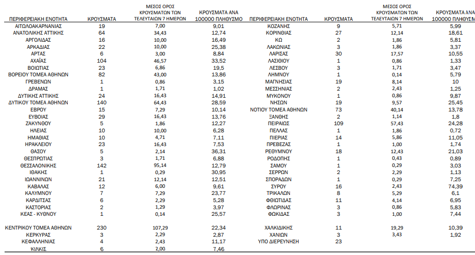 Η γεωγραφική κατανομή των 1460 κρουσμάτων.722 στην Αττική