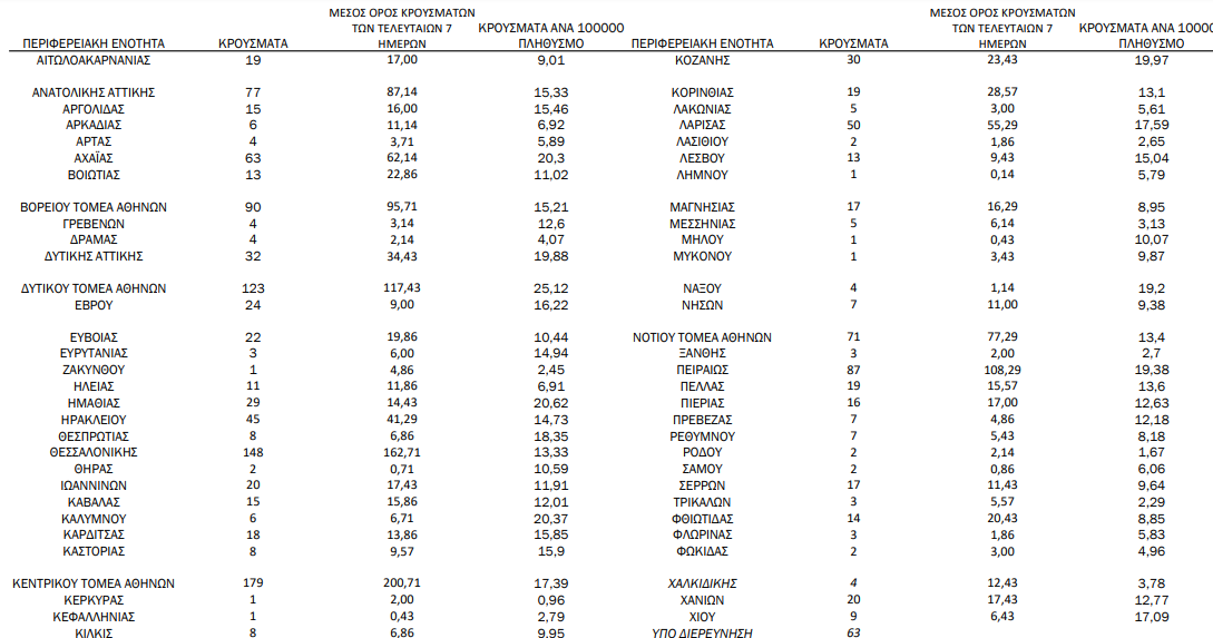 Η γεωγραφική κατανομή των 1533 κρουσμάτων. 666 στην Αττική(ΠΙΝΑΚΑΣ)