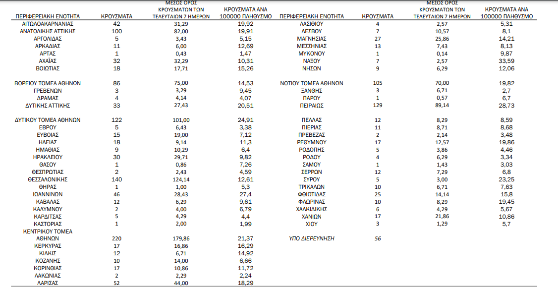 Η γεωγραφική κατανομή των 1585 κρουσμάτων. 804 στην Αττική(ΠΙΝΑΚΑΣ)