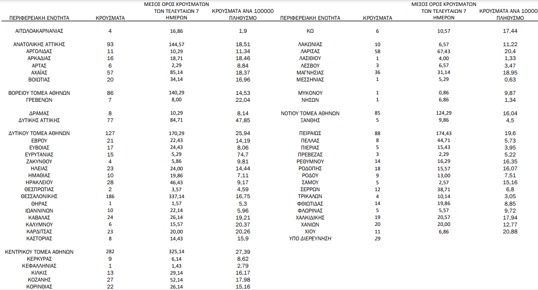 Η γεωγραφική κατανομή των 1718 κρουσμάτων. 839 στην Αττική(ΠΙΝΑΚΑΣ)