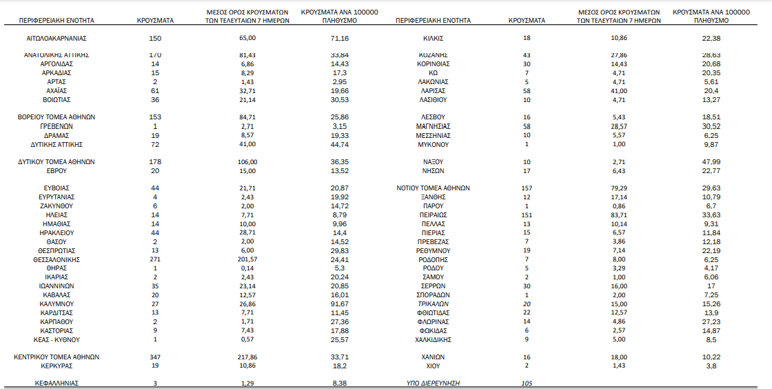 Η γεωγραφική κατανομή των 2.691 κρουσμάτων. 1245 στην Αττική(ΠΙΝΑΚΑΣ)