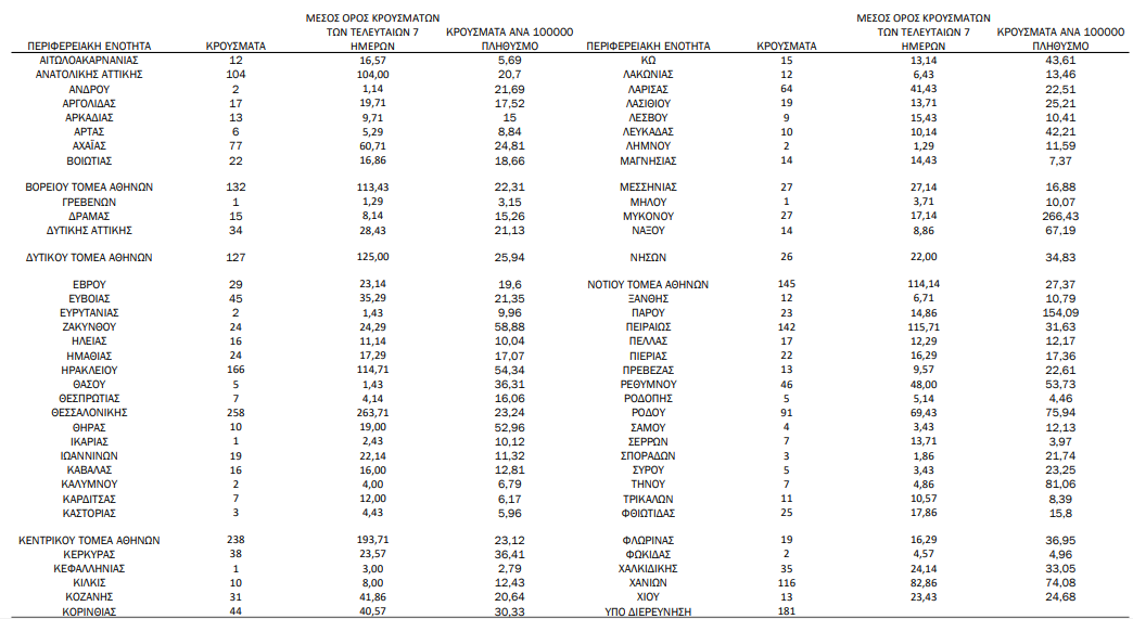 Η γεωγραφική κατανομή των 2.760 κρουσμάτων.948 στην Αττική (ΠΙΝΑΚΑΣ)