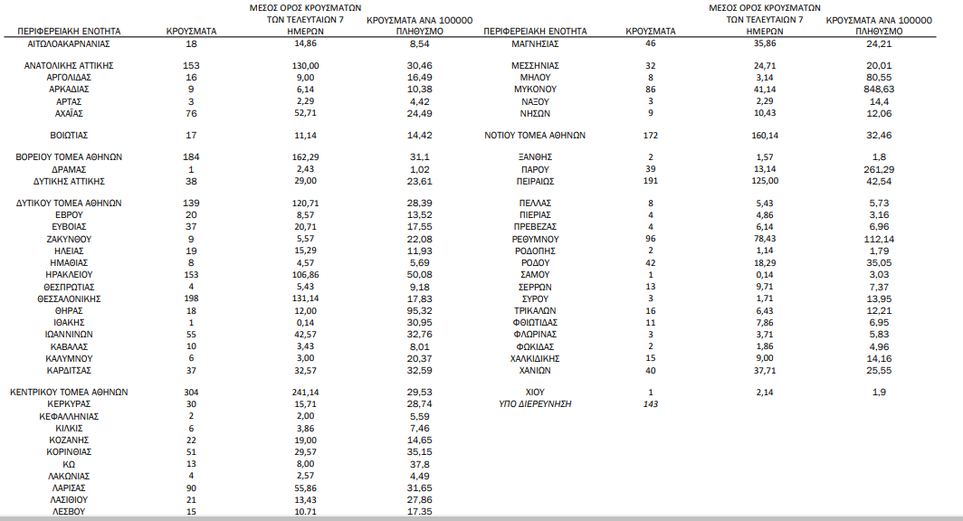 Η γεωγραφική κατανομή των 2.794 κρουσμάτων.1.190 στην Αττική(ΠΙΝΑΚΑΣ)