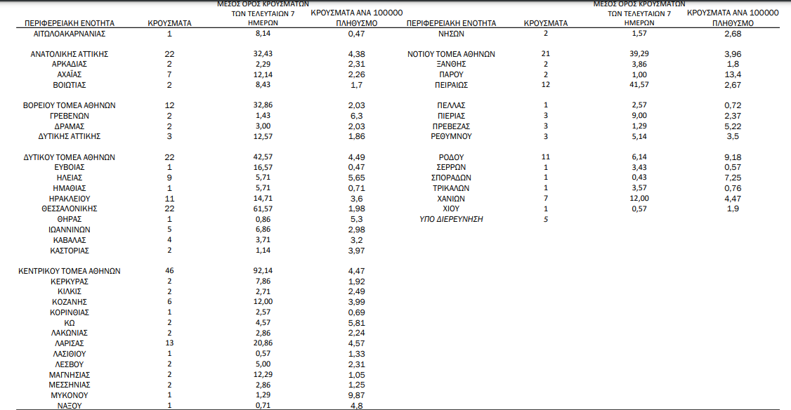 Η γεωγραφική κατανομή των 297 κρουσμάτων.140 στην Αττική(ΠΙΝΑΚΑΣ)