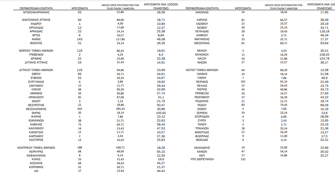 Η γεωγραφική κατανομή των 3.064 κρουσμάτων. (ΠΙΝΑΚΑΣ)