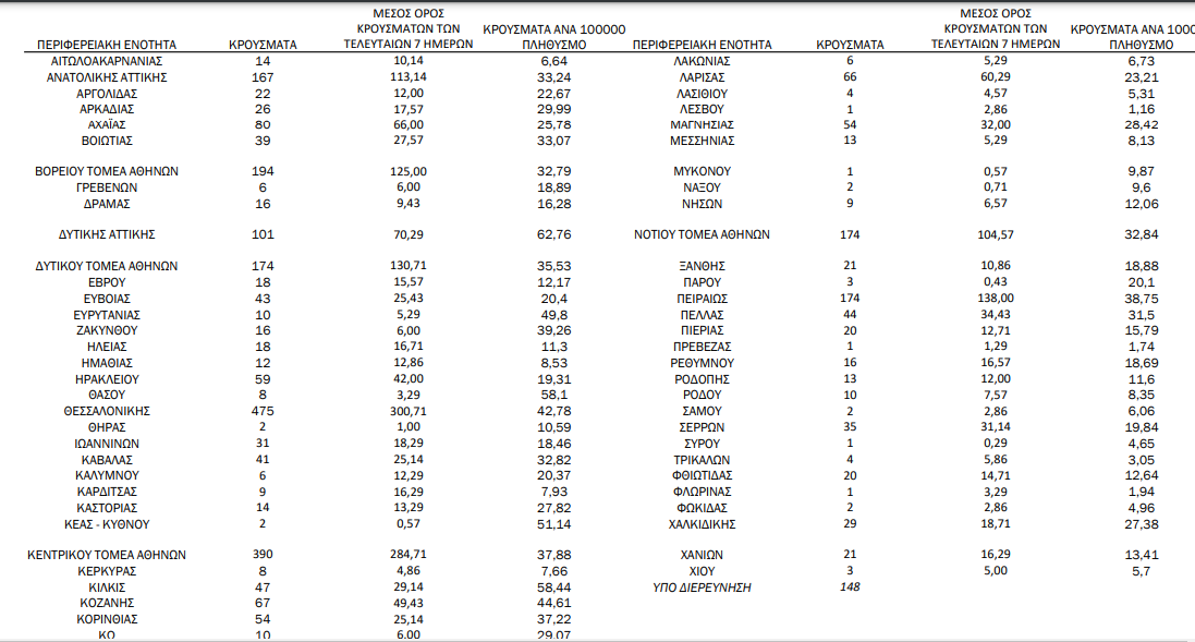 Η γεωγραφική κατανομή των 3.089 κρουσμάτων.1383 στην Αττική (ΠΙΝΑΚΑΣ)