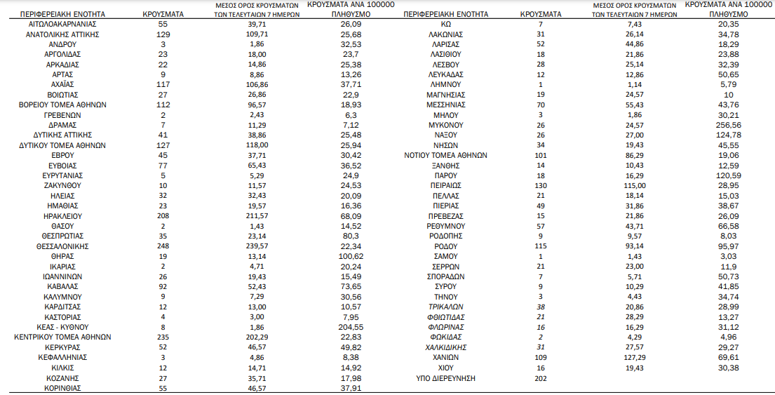 Η γεωγραφική κατανομή των 3.270 κρουσμάτων. 909 στην Αττική(ΠΙΝΑΚΑΣ)