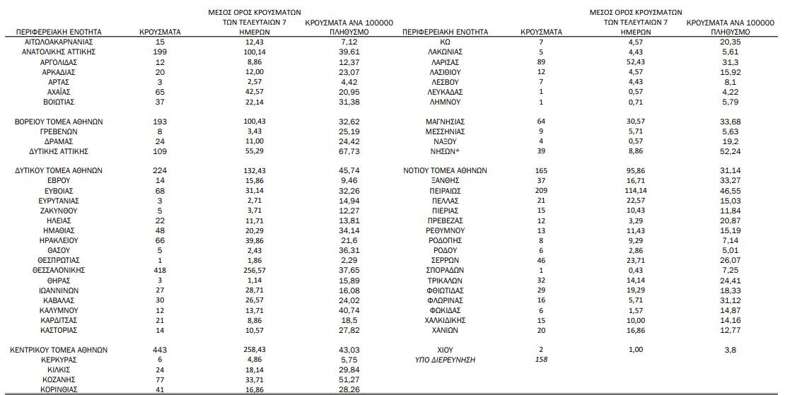 Η γεωγραφική κατανομή των 3.313 κρουσμάτων. 1581 στην Αττική(ΠΙΝΑΚΑΣ)