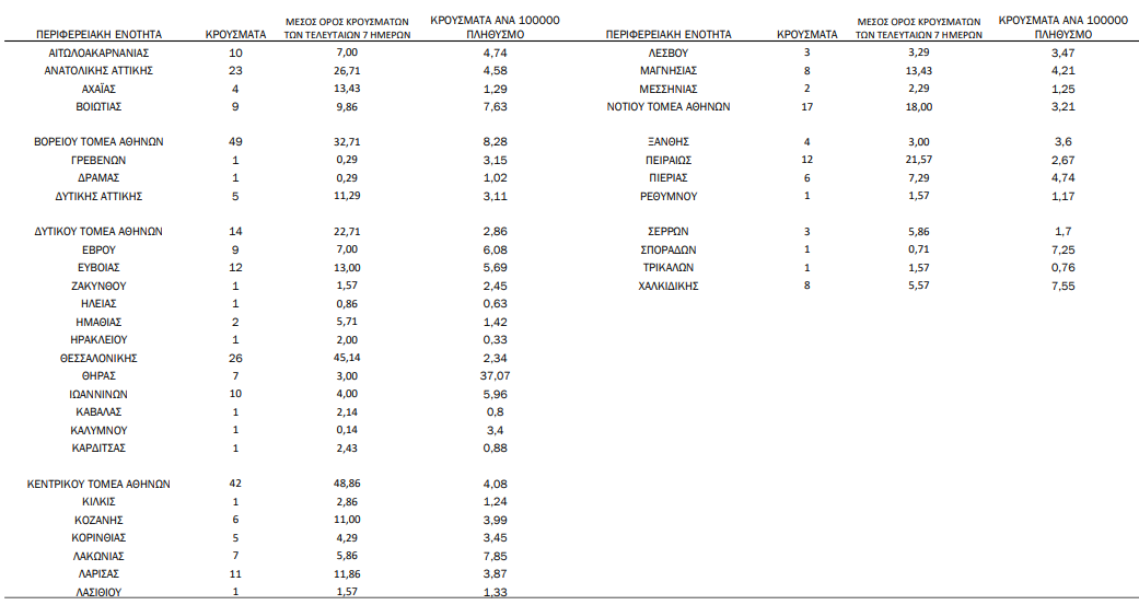 Η γεωγραφική κατανομή των 334 κρουσμάτων.162 στην Αττική, 26 στη Θεσ/νίκη