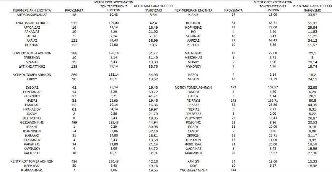 Η γεωγραφική κατανομή των 3616 κρουσμάτων.1706 στην Αττική(ΠΙΝΑΚΑΣ)