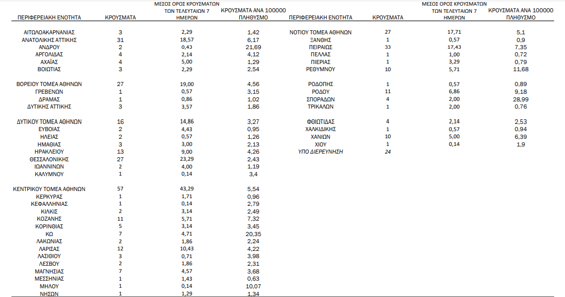 Η γεωγραφική κατανομή των 395 κρουσμάτων. 195 στην Αττική(ΠΙΝΑΚΑΣ)