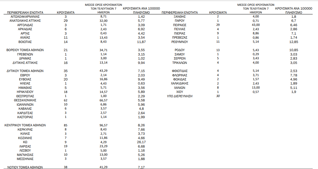 Η γεωγραφική κατανομή των 591 κρουσμάτων. 253 στην Αττική (ΠΙΝΑΚΑΣ)