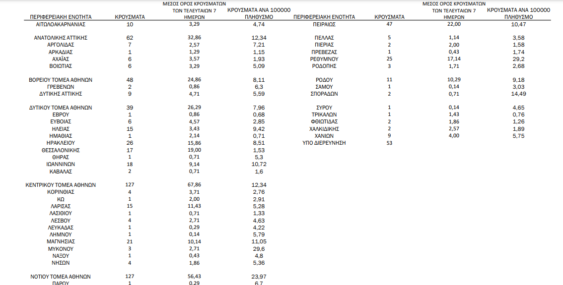 Η γεωγραφική κατανομή των 771 κρουσμάτων. 436 στην Αττική(ΠΙΝΑΚΑΣ)