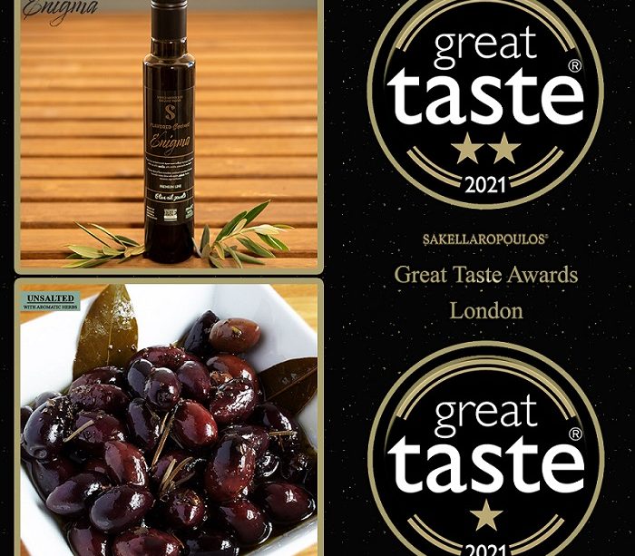 Οι βιολογικοί ελαιώνες Σακελλαρόπουλου, έχοντας ήδη τιμηθεί στο παρελθόν με 31 συνολικά Χρυσά Αστέρια από τον διαγωνισμό Great Taste Awards, συμμετείχαν για άλλη μια χρονιά με τα καινοτόμα ελαιοπροϊόντα τους και τιμήθηκαν με δύο (2) υψηλές αλλά και μοναδικές βραβεύσεις χρυσών αστεριών, συμπληρώνοντας έτσι το μοναδικό αριθμό 33 βραβείων Great Taste Awards συνολικά. Αναλυτικά, τα βραβεία για το 2021 είναι :
