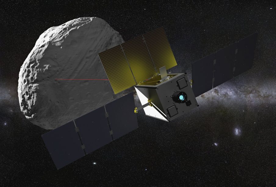 Μια άποψη της μικρότερης μελλοντικής αποστολής αστεροειδών της ESA που χαρτογραφεί το σώμα-στόχο της με λέιζερ.