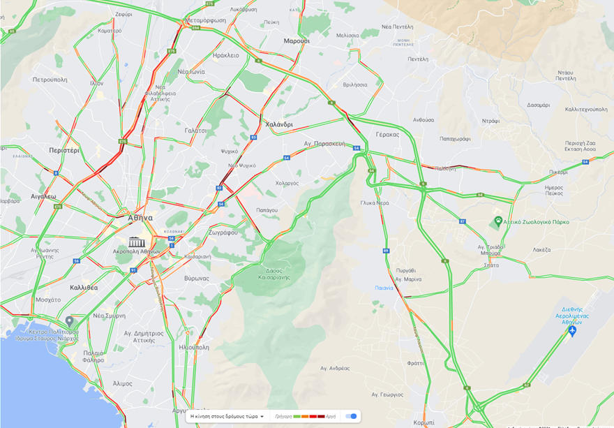 Καθυστερήσεις καταγράφονται τώρα επί της εθνικής οδού Αθηνών – Λαμίας, στο ρεύμα προς Πειραιά, στο ύψος της Μεταμόρφωσης και στο ανοδικό ρεύμα από το ύψος του Κηφισού έως Αχαρνών.