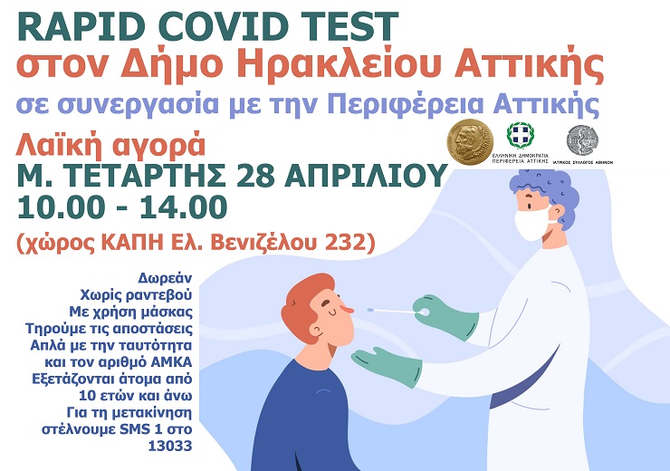 Νέα δράση δωρεάν rapid covid tests στον Δήμο Ηρακλείου: Λαϊκή Αγορά Μ. Τετάρτης 28/4