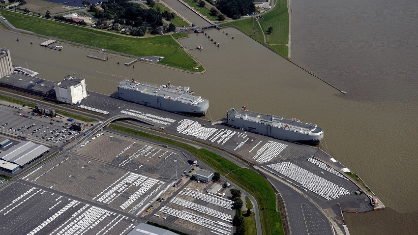 Two Volkswagen charter ships in the port of Emden.