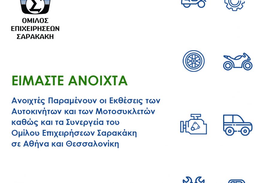 Όμιλος Επιχειρήσεων Σαρακάκη: Ανοιχτές οι Εκθέσεις Αυτοκινήτων, Μοτοσυκλετών & τα Συνεργεία