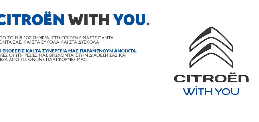 H Citroën από το 1919 είναι πάντα δίπλα στους πελάτες της, σε εύκολες και σε δύσκολες στιγμές. O ανθρώπινος παράγοντας είναι πάντα στο επίκεντρο των αποφάσεών της Μάρκας. Η υγεία όλων είναι η κύρια προτεραιότητά μας. Η άριστη εξυπηρέτηση των πελατών, αποτελεί για τη Citroën αδιαπραγμάτευτη αρχή και σε αυτή τη δύσκολη περίοδο για όλους, οι υπηρεσίες των Πωλήσεων όσο και του After Sales παραμένουν σε πλήρη λειτουργία. Είμαστε πάντα στη διάθεση των πελατών για να εξυπηρετήσουμε και να απαντήσουμε στις ερωτήσεις και στα αιτήματά τους, θέλοντας να διατηρήσουμε τον προνομιακό δεσμό που έχει δημιουργηθεί. Είμαστε όσο πιο κοντά μπορούμε, αλλά πάντα σε απόσταση ασφαλείας, ακολουθώντας τις νέες τεχνολογίες.
