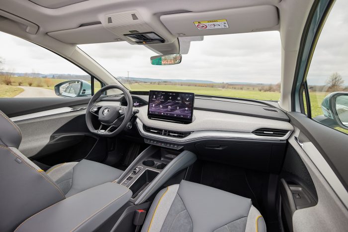 Ο Peter Olah, Επικεφαλής Εσωτερικού Σχεδιασμού στη SKODA AUTO, δήλωσε: «Καταφέραμε να χαράξουμε εντελώς νέα μονοπάτια όταν σχεδιάσαμε το εσωτερικό του ENYAQ iV. Η απουσία σήραγγας μετάδοσης, χαρακτηριστικό των ηλεκτρικών οχημάτων, είχε ως αποτέλεσμα περισσότερο χώρο για επιβάτες και επιπλέον χώρο αποθήκευσης. Η διάταξη πολλαπλών επιπέδων του ταμπλό που εκτείνεται σε όλο το πλάτος του ENYAQ iV, κάνει επίσης το εσωτερικό να φαίνεται μεγαλύτερο. Οι Design Selections, οι οποίες προσφέρουν στους πελάτες απόλυτα αρμονικά περιβάλλοντα, προσθέτουν έντονη προσωπικότητα στο σαλόνι του μοντέλου».