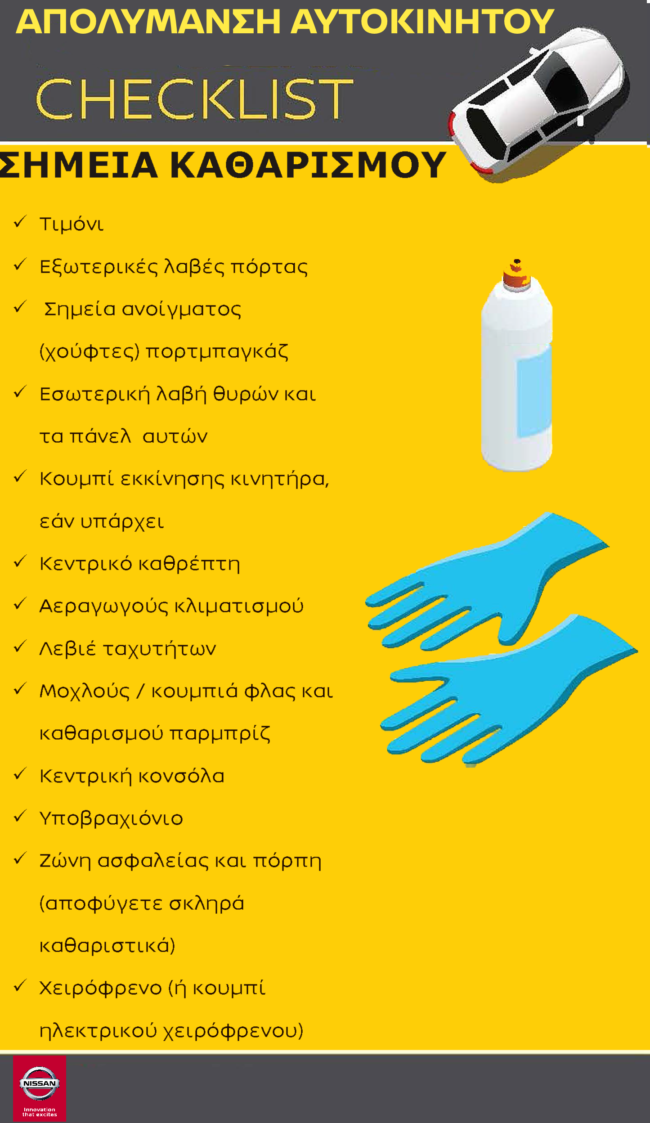 Η Nissan παρέχει μια λίστα με τα σημεία που πρέπει να προσέξετε, κατά τη διαδικασία απολύμανσης του αυτοκινήτου σας :