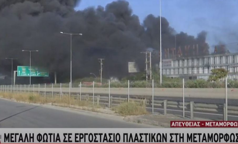 Συνεχίζει να καίει η φωτιά στο εργοστάσιο πλαστικών στη Μεταμόρφωση- Κατέρρευσε τμήμα του κτιρίου