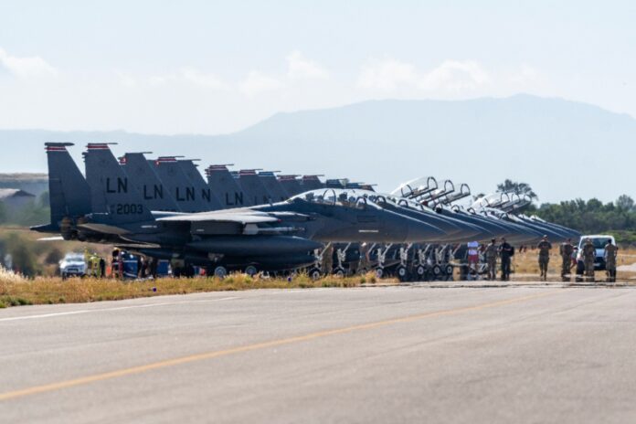 Το αεροπορικό κλιμάκιο των ΗΠΑ, το οποίο αποτελείται από προσωπικό και 14 αεροσκάφη F-15E της 492 Fighter Squadrom (FS) της US Air Forces in Europe – USAFE, ολοκλήρωσε τη μεταστάθμευση του στο Αεροδρόμιο της Σούδας την Πέμπτη 27 Μαΐου 2021.
