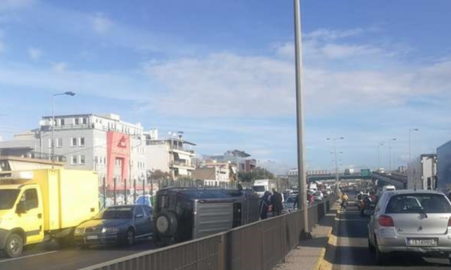 Τεράστιο μποτιλιάρισμα στον Κηφισό.Tζιπ έπεσε σε κολώνα της ΔΕΗ