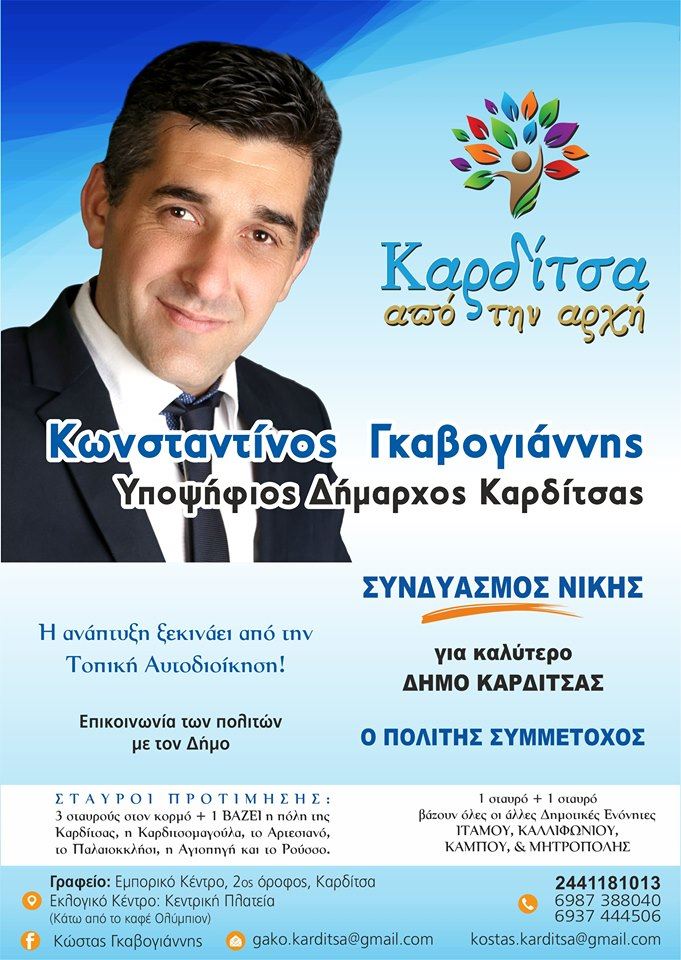 Το φυλλάδιο του συνδυασμού “Καρδίτσα από την Αρχή” του Κ. Γκαβογιάννη με τους υποψήφιους συμβούλους