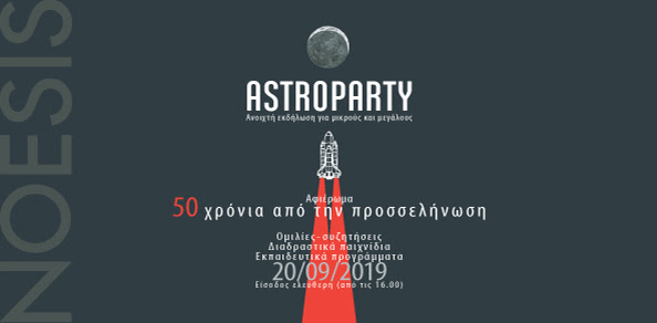 Το ΝΟΗΣΙΣ σας προσκαλεί στην ετήσια, ανοιχτή για το κοινό εκδήλωση “Astroparty 2019”, την Παρασκευή 20 Σεπτεμβρίου 2019, από τις 16:00.