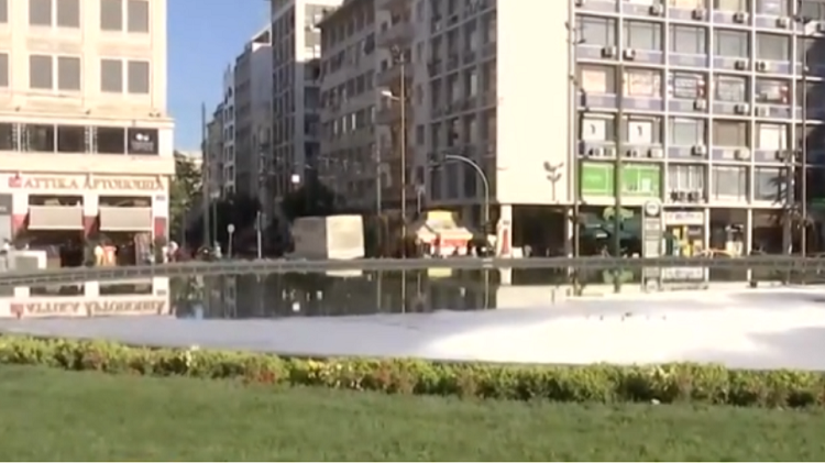 Περισσότερο με τζακούζι, έμοιαζε σήμερα το συντριβάνι της πλατείας Ομονοίας, καθώς ήταν γεμάτο με… σαπουνάδες.
