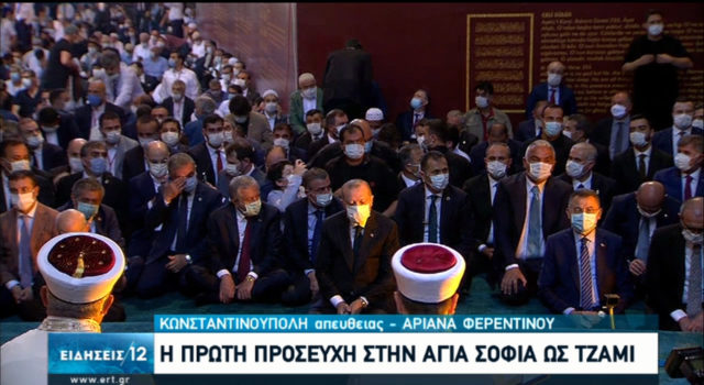 Για πρώτη φορά μετά από 86 χρόνια, στην Αγία Σοφία λειτουργεί ως τζαμί, απο τις 10 το πρωί ώρα Ελλάδος. Η σημερινή εκτός απο τηλεοπτικό θέαμα, θεωρείται ημέρα συμβολική, με πολιτικό, θρησκευτικό και ιδεολογικό πρόσημο, για τον Τούρκο πρόεδρο Ρετζέπ Ταγίπ Ερτνογάν που δείχνει να αψηφά την διεθνή προτροπή να μην λειτουργήσει το ιστορικό μνημείο ως τζαμί. Ο ίδιος προσήλθε στον ναό για την «Μεγάλη Προσευχή» φορώντας μάσκα για τον κορονοϊό ενώ μέσα και έξω απο την Αγία Σοφία έχει δημιουργηθεί το αδιαχώρητο.