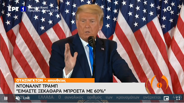 Σήμερα είναι φανταστικά τα αποτελέσματα ετοιμαζόμαστε να βγούμε έξω και να γιορτάσουμε, είπε ο πρόεδρος Τραμπ στις πρώτες δηλώσεις του. «Έχουμε κάνει μεγάλο ρεκόρ» πρόσθεσε. «Κερδίσαμε πολιτείες που δεν περιμέναμε ποτέ να τις πάρουμε, όπως τη Φλόριντα. Πήραμε τη σπουδαία πολιτεία του Οχάιο, το Τέξας, την Τζόρτζια. Αλλά κυρίως, κερδίζουμε την Πενσιλβάνια! Είμαστε μπροστά», είπε. Έκανε λόγο για τεράστια νοθεία στη χώρα και προανήγγειλε προσφυγή στο Ανώτατο Δικαστήριο των ΗΠΑ. Οσον αφορά έμενα έχουμε κερδίσει, είπε