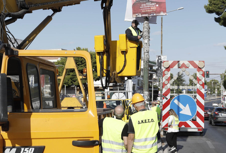 Από την Μεσογείων ξεκίνησε αφαίρεση των παράνομων πινακίδων