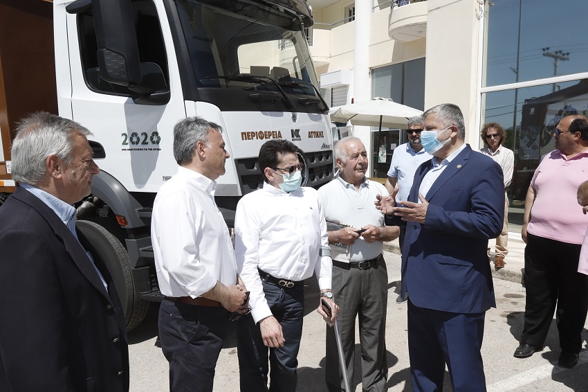 Στο πλαίσιο του προγράμματος που υλοποιεί η Περιφέρεια με στόχο τη διάδοση και ενίσχυση της ανακύκλωσης σε όλη την Αττική, ο Περιφερειάρχης Αττικής Γ. Πατούλης παρέδωσε σήμερα απορριμματοφόρo υψηλής τεχνολογίας και 90 καφέ κάδους για τη συλλογή οργανικών αποβλήτων στον Δήμαρχο Ωρωπού Γ. Γιασημάκη.