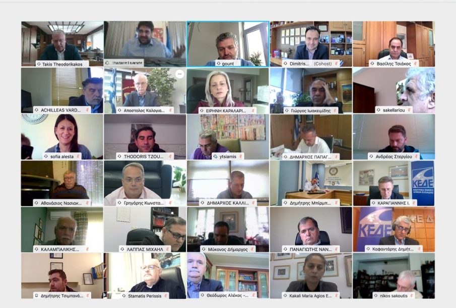 Στην τηλεδιάσκεψη έγινε παρέμβαση από τον Υπουργό Εσωτερικών, Τάκη Θεοδωρικάκο, τον Υφυπουργό Θοδωρή Λιβάνιο και τον Γ.Γ. του ΥΠ.ΕΣ. Μιχάλη Σταυριανουδάκη .
